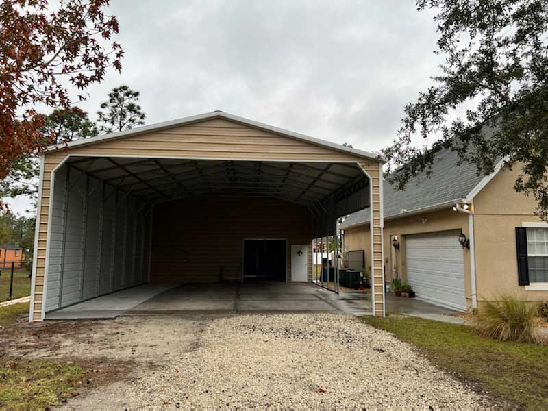 Choose a size, Standard One or Two car carports vary between 12’ Ft. to 24’ Ft. Wide.